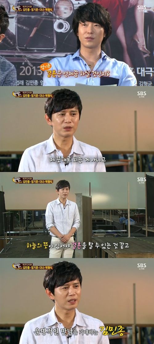 엄기준이 “결혼은 언제 할 거냐”고 묻자 김민종은 “내 뜻대로 되는 것이 아닌 것 같다. 하늘의 뜻이 있어야 할 것 같다”고 말했다.