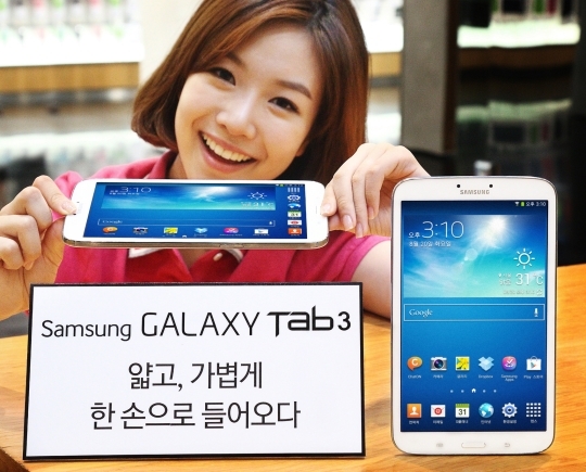 삼성전자는 22일 203.1mm(8.0형) 대화면에 휴대성을 강화한 '갤럭시 탭3'를 국내 시장에 출시한다고 밝혔다.