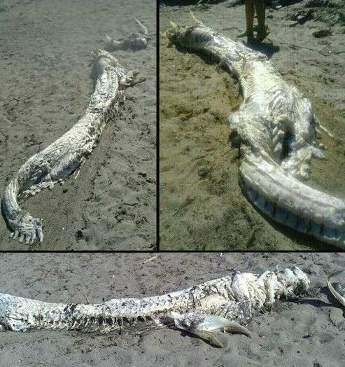 보도에 따르면 ‘스페인 괴생명체’는 성인 남성 2명의 키를 합친 것보다 훨씬 큰 4m 정도의길이를 자랑했다. 몸통에 입과 꼬리가 달려있고 발견 당시 흰 색의 몸 색깔을 지닌 것으로 알려졌다. 아직 확실한 정체는 알려지지 않았다.