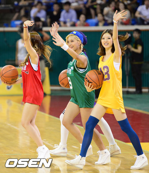 22일 오후 서울 잠실학생체육관에서 열린 2013 KB국민카드 프로-아마 최강전 결승전 상무와 고려대의 경기에 앞서 걸그룹 리브하이가 시구를 위해 입장하고 있다
