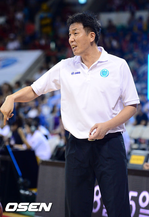 22일 오후 서울 잠실학생체육관에서 열린 2013 KB국민카드 프로-아마 최강전 결승전 상무와 고려대의 경기, 2쿼터 역전을 허용한 상무 이훈재 감독이 선수들에 작전 지시를 하고 있다