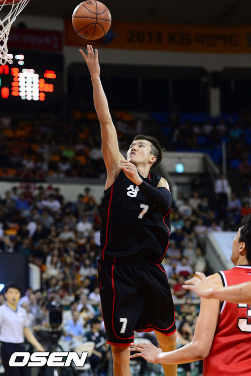 22일 오후 서울 잠실학생체육관에서 열린 2013 KB국민카드 프로-아마 최강전 결승전 상무와 고려대의 경기, 3쿼터 상무 박찬희가 레이업슛을 성공하고 있다