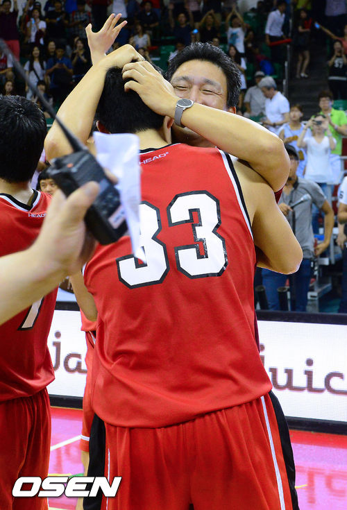 경기종료 후 고려대 이민형 감독이 이승현과 포옹을 하고 있다. / soul1014@osen.co.kr