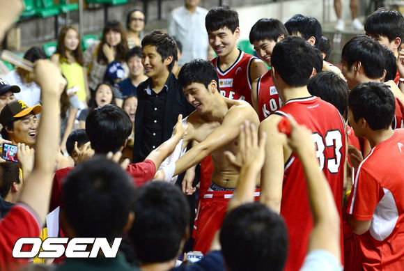 경기종료 후 고려대 박재현이 고려대 동문 응원단에서 기쁨의 상의 탈의 세레모니를 펼치고 있다. / soul1014@osen.co.kr