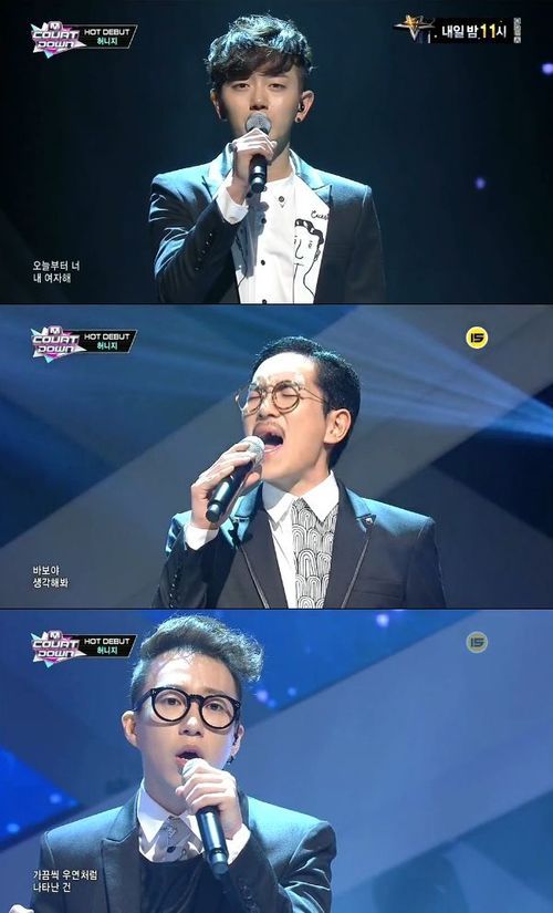 이날 허니지는 블랙 수트를 차려 입은 모습으로 등장, 부드러운 음색을 뽐냈다. 이들은 지난해 엠넷 '슈퍼스타K4'에 등장했을 때와는 달리 훤칠해진 외모로 시선을 끌었다.