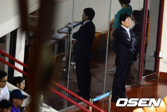 22일 오후 서울 목동야구장에서 열린 '2013 한국야쿠르트 세븐 프로야구' 넥센 히어로즈와 NC 다이노스의 경기, 넥센 이장석 대표이사가 진지한 표정으로 경기를 지켜보고 있다.