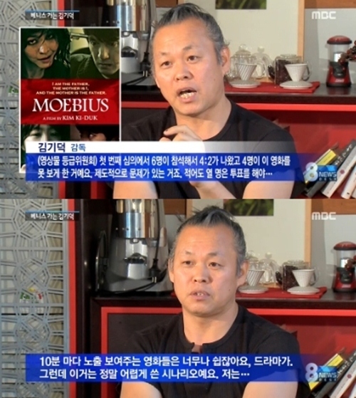 [OSEN=방송연예팀] 김기덕 감독이 MBC '뉴스데스크'에 출연해 영화 '뫼비우스'의 제한상영 등급과 관련된 입장을 밝혔다.