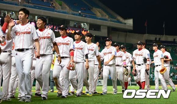 경기 종료 후 SK 선수들이 승리의 기쁨을 나누고 있다. /sunday@osen.co.kr