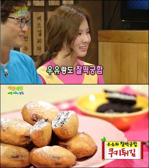 시중에서 파는 일반 초코 쿠키에 핫케이크 가루에 달걀,우유를 반죽한 튀김 옷을 입혀서 튀겨낸것이다. 우유와 함께 완성된 튀김요리를 맛본 출연진들은 맛있다며 칭찬을 했다. 특히 박명수는 찹쌀도너츠 맛이 난다며 지금까지 디저트중 가장 맛있었다며 칭찬을 아끼지 않았다.