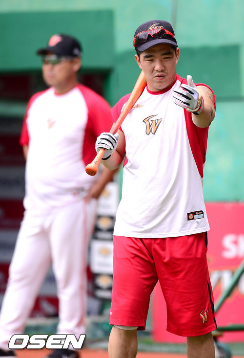 23일 오후 인천 문학구장에서 열린 2013 한국야쿠르트 세븐프로야구 SK 와이번스와 LG 트윈스의 경기에 앞서 SK 정근우가 타격훈련을 나서고 있다