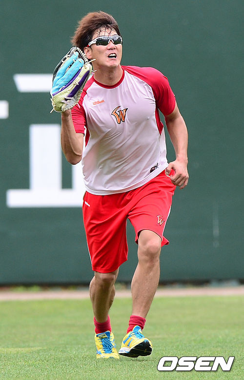 23일 오후 인천 문학구장에서 열린 2013 한국야쿠르트 세븐프로야구 SK 와이번스와 LG 트윈스의 경기에 앞서 SK 김광현이 동료들의 타격훈련을 외야에서 돕고 있다.