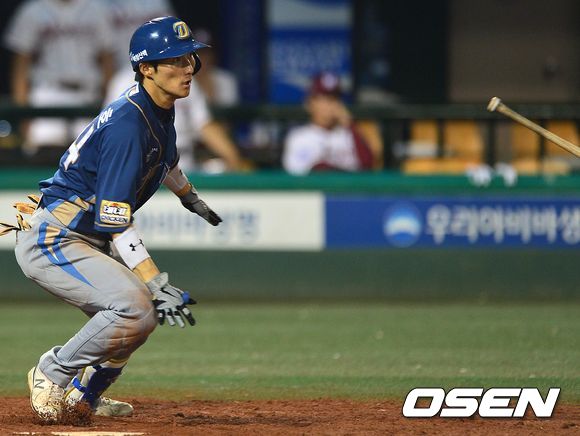 8회초 NC 공격 1사 1루 상황 7번타자 이상호가 적시 1타점 우전안타를 날리고 있다.