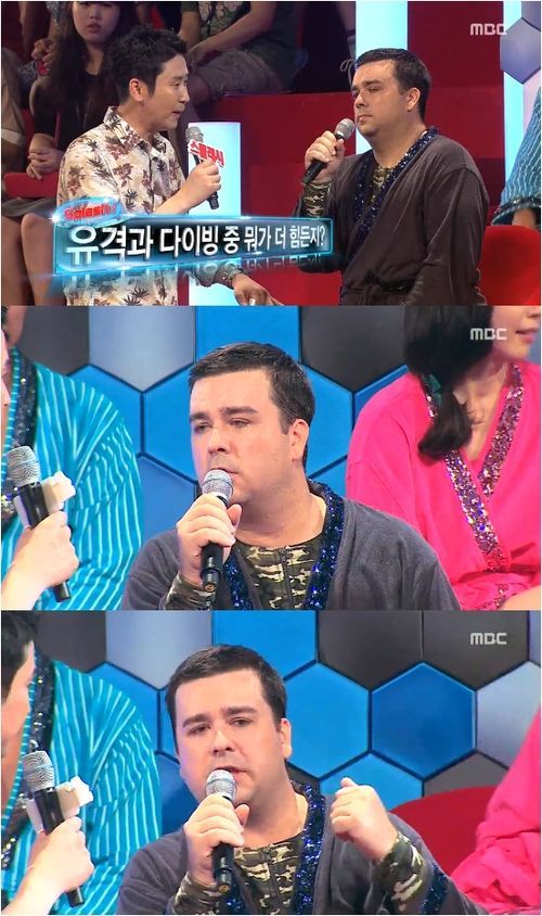 방송인 샘 해밍턴이 유격훈련보다 다이빙 도전이 어렵다고 혀를 내둘렀다.