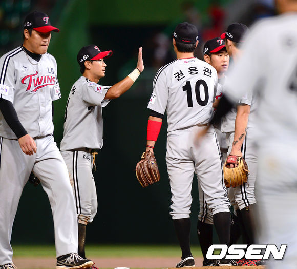 경기종료 후 LG 선수들이 승리의 기쁨을 나누고 있다. /soul1014@osen.co.kr