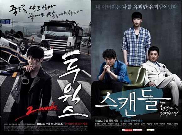 ‘투윅스’는 억울한 살인 누명을 쓴 장태산(이준기 분)이 딸을 살리기 위해 탈주하는 이야기를 그린 드라마. ‘스캔들’은 건물 붕괴 사고로 인해 벌어지는 복수와 그 이후의 삶, 그리고 상처와 극복에 관한 이야기다.