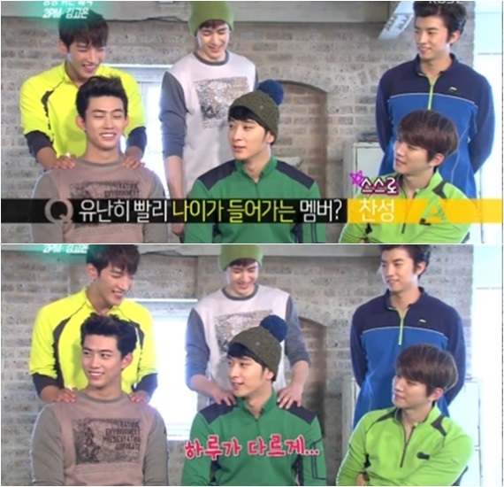 이날 인터뷰에서 찬성은 "유난히 나이가 빨리 들어가는 멤버가 누구냐"는 질문에 스스로 "찬성이라는 아이가 있다"는 '셀프 디스' 대답을 내놓았다.