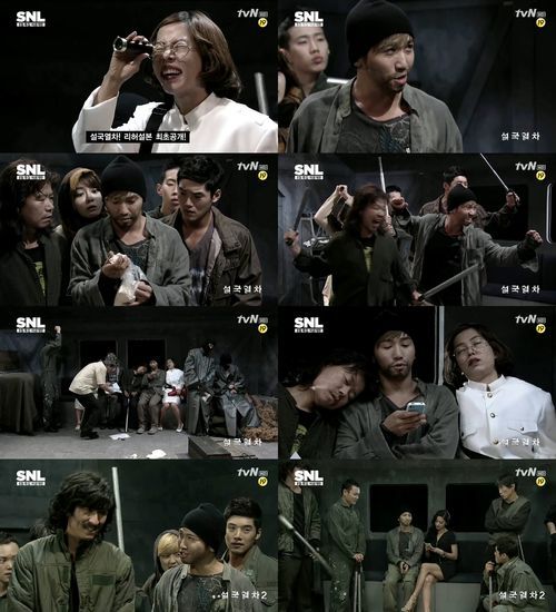 24일 'SNL 코리아'는 8월 특집으로 미방영 콩트를 공개한 가운데, '설국열차' 패러디가 전파를 탔다.