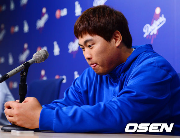 경기를 마치고 다저스 류현진이 인터뷰를 하고 있다. / rumi@osen.co.kr