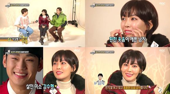 그는 이날 "이상형은 어떤 사람인가"라는 질문에 "환한 웃음이 예쁜 남자가 좋다"라면서 "김수현씨"라고 밝혔다.