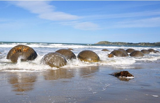 공개된 사진 속에는 커다란 공 모양의 돌덩어리들이 해변에 놓여 있다. 마치 파도에 공들이 밀려오는 것 처럼 느껴진다. 그러나 크기는 1~7m, 무게는 7톤이 넘는 것도 있다고 한다. 약 50여개가 있다.