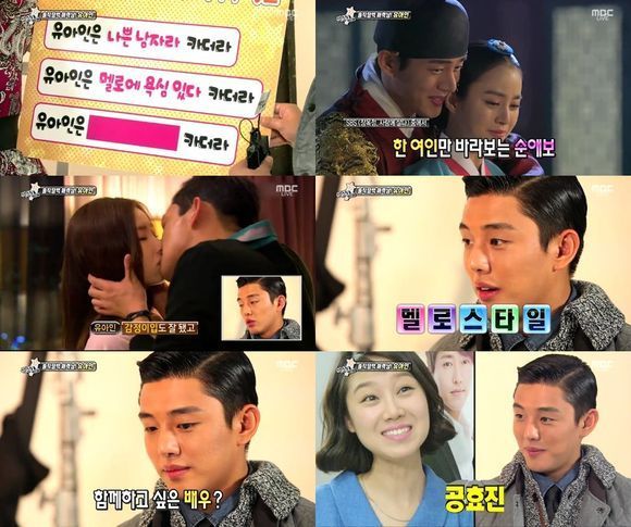 배우 유아인이 배우 공효진에게 함께 공연하고 싶다는 러브콜을 보내 눈길을 끌었다. 유아인은 25일 오후 방송된 MBC '섹션 TV 연예통신(이하 '섹션')'에서 "공효진 선배와 멜로를 찍고 싶다"고 밝혔다.