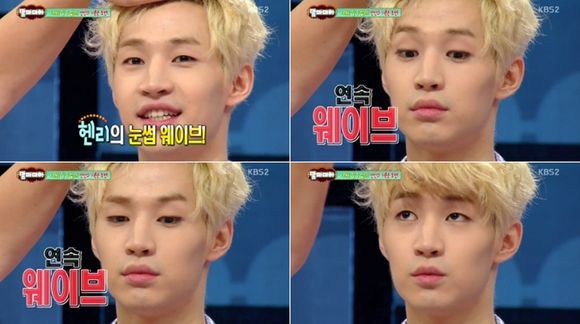 헨리는 25일 방송된 KBS 2TV '맘마미아'에서 개인기로 눈썹 웨이브를 선보였다. 그는 손 끝으로 웨이브 시동을 건 후, 물흐르듯 자연스럽게 온몸을 훑는 웨이브를 선보여 출연진의 감탄을 자아냈다.
