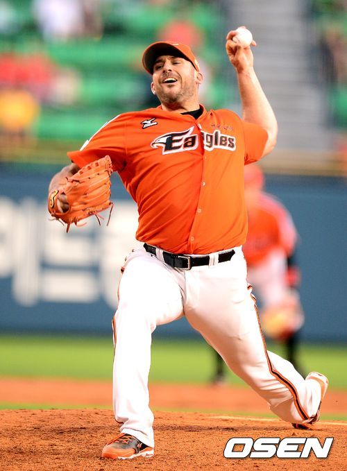25일 오후 서울 잠실야구장에서 열린 '2013 한국야쿠르트 세븐 프로야구' 두산 베어스와 한화 이글스의 경기, 한화 선발 이브랜드가 역투하고 있다.