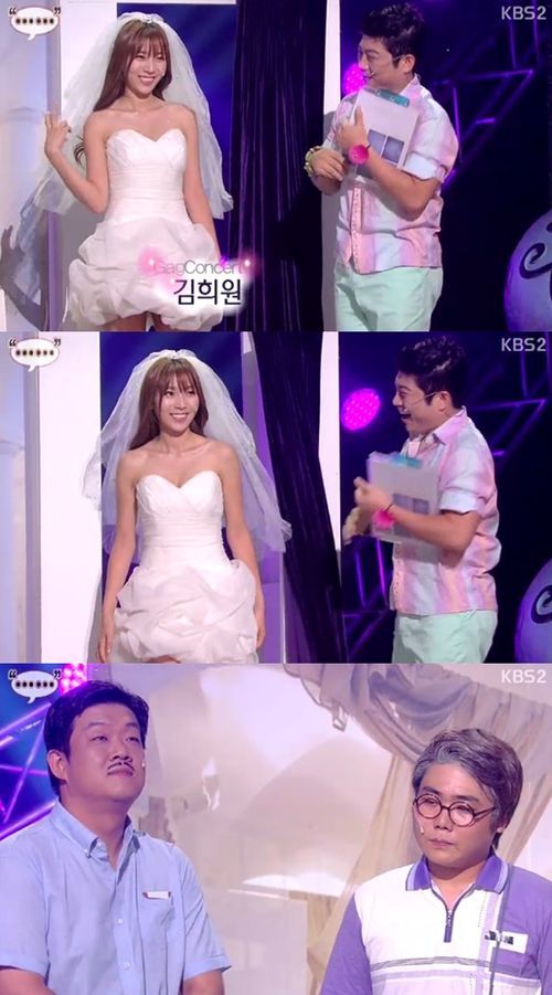 특히 김희원은 미니 웨딩드레스로 눈부신 자태를 뽐냈지만 송필근은 "야하다"고 말하며 마음에 들어하지 않았다.
