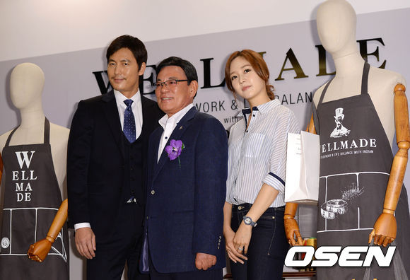 배우 정우성과 성유리가 세정그룹 박순호 회장과 포토타임을 하고 있다.
