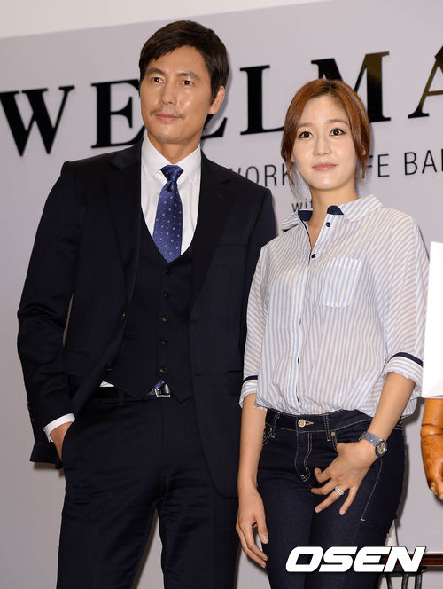 배우 정우성과 성유리가 포토타임을 하고 있다.