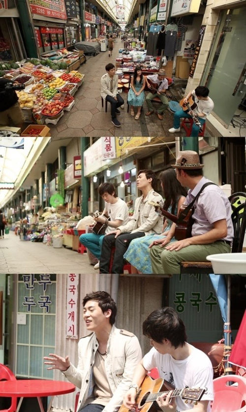 [OSEN=방송연예팀] 뮤지션 존박이 재래시장 한복판에서 미국 내쉬빌 모던팝 듀오 스완다이브와 콜라보레이션 무대를 선보여 화제를 모았다.