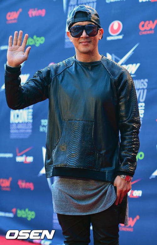 26일(이하 한국시간) 미국 캘리포니아주 로스앤젤레스 LA 메모리얼 스포츠 아레나에서 열리는 '엠넷 엠카운드다운 왓츠 업 LA'공연에 앞서 열린 레드카펫 행사에서 디제이 쿠가 포토타임을 갖고 있다.