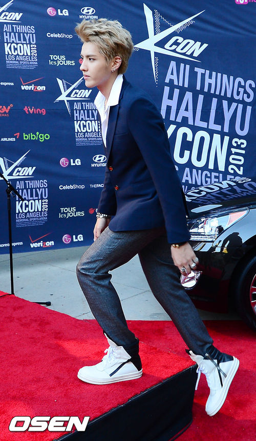 26일(이하 한국시간) 미국 캘리포니아주 로스앤젤레스 LA 메모리얼 스포츠 아레나에서 열리는 '엠넷 엠카운드다운 왓츠 업 LA'공연에 앞서 열린 레드카펫 행사에서 엑소가 입장하고 있다.