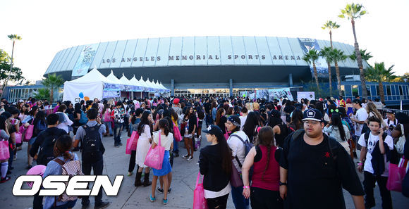 26일(이하 한국시간) 미국 캘리포니아주 로스앤젤레스 LA 메모리얼 스포츠 아레나에서 열리는 '엠넷 엠카운트다운 왓츠 업 LA'공연에 수많은 팬들이 입장을 기다리고 있다.
