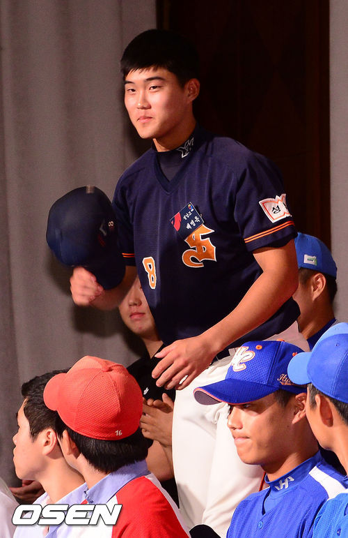 26일 오후 2시 르네상스 서울 호텔 3층 다이아몬드 볼룸에서 열린 2014년 프로야구 신인 2차 지명회의에서 LG에 1차 지명된 성남고 배영옥이 인사를 하고 있다