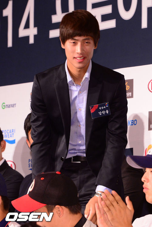 26일 오후 2시 르네상스 서울 호텔 3층 다이아몬드 볼룸에서 열린 2014년 프로야구 신인 2차 지명회의에서 KIA에 1차 지명된 강한울이 인사를 하고 있다