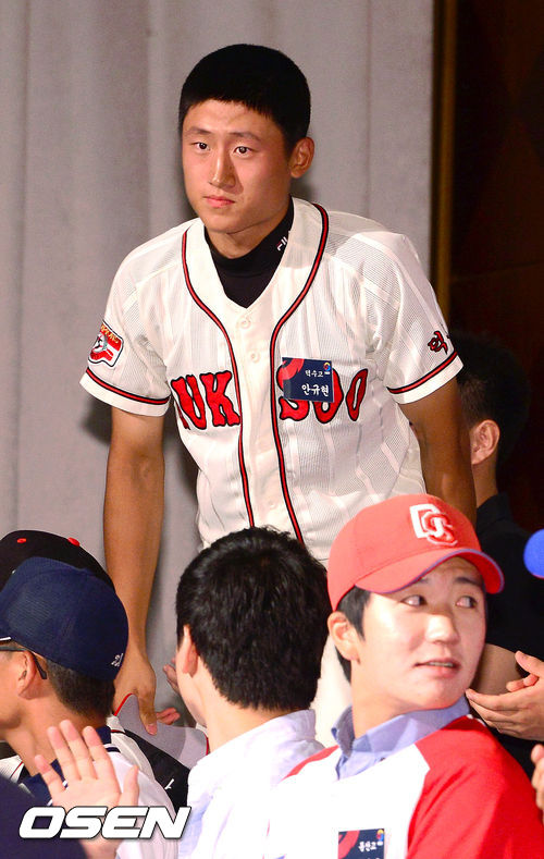 26일 오후 2시 르네상스 서울 호텔 3층 다이아몬드 볼룸에서 열린 2014년 프로야구 신인 2차 지명회의에서 삼성에 1차 지명된 안규현이 인사를 하고 있다