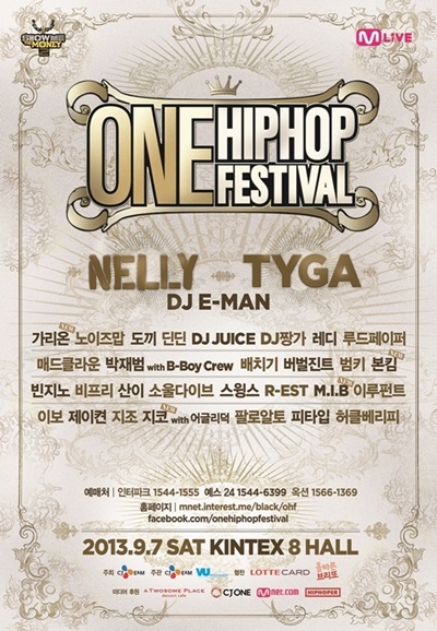 페스티벌은 오는 9월 7일(15:00~익일 05:00)일산 KINTEX 8홀에서 열린다. 넬리(NELLY), TYGA(타이가) 등 해외 유수 힙합 아티스트를 비롯해 버벌진트 ,팔로알토, 배치기, 범키,빈지노,도끼, 매드클라운, 스윙스 등 국내 최고 힙합 아티스트들이 한 자리에 모인다.