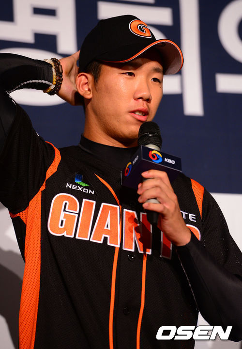 26일 오후 2시 르네상스 서울 호텔 3층 다이아몬드 볼룸에서 열린 2014년 프로야구 신인 2차 지명회의에서 롯데에 1차지명된 김유영이 소감을 말하고 있다