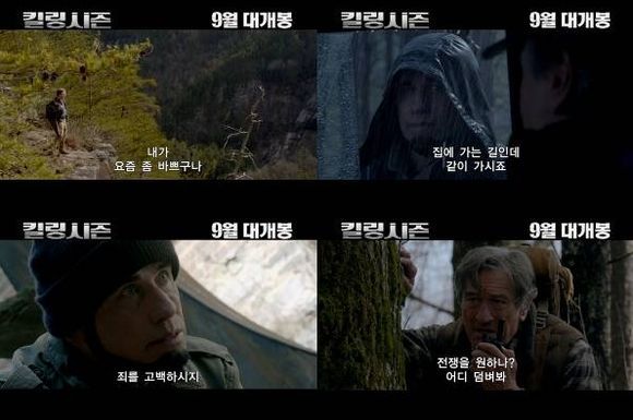 ‘킬링시즌’은 애팔래치아 산맥의 외딴 오두막에 혼자 은거해 살고 있는 퇴역군인이 전직 세르비아 군인을 만나면서 시작되는 갈등을 그린 영화다. 할리우드 명배우 로버트 드니로와 존 트라블타가 각각 이 같은 역할을 맡아 명불허전 연기력을 뽐내며 피할 수 없는 격돌을 펼치는 게 주된 스토리다.