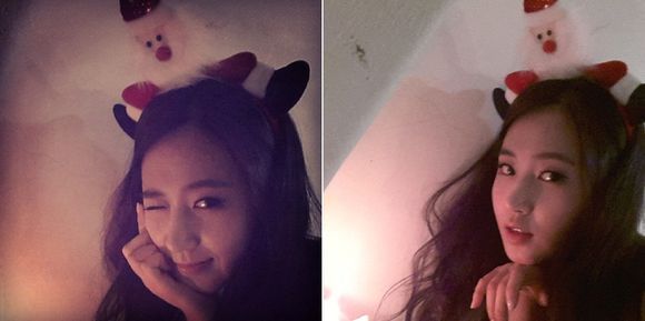 인기그룹 소녀시대의 유리가 머리 위에 산타클로스 인형을 얹은 사진을 공개, 미모를 뽐냈다.