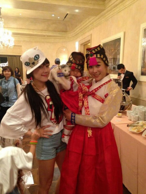 사진 속 낸시랭은 딸의 돌잔치를 맞아 곱게 한복을 맞춰입은 현영과 포즈를 취하고 있다. 밟게 웃는 현영과 달리 졸려보이는 딸이 귀여움을 자아낸다. 뒤에서 취재중인 조정린도 눈에 띈다.