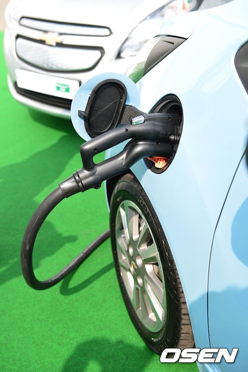 스파크EV, '앞바퀴 위 전기충전 단자'