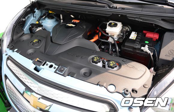 27일 오전 인천 서구 원창동 청라 프루빙 그라운드에서 순수전기차 '쉐보레 스파크EV' 신차발표회가 열렸다. 사진은 '스파크EV' 엔진룸 모습.