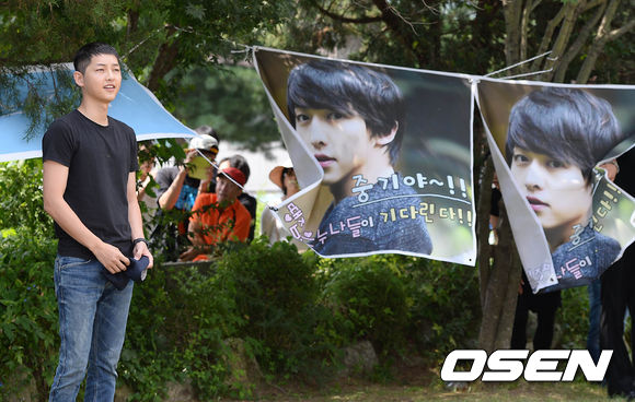 송중기는 이날 보충대에 도착, 정문 앞에서 입대 현장을 찾은 팬클럽 및 팬들에게 입대 소감과 인사를 전했다.