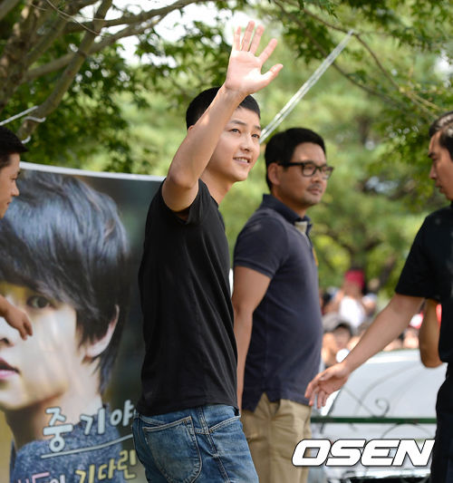송중기는 이날 보충대에 도착, 정문 앞에서 입대 현장을 찾은 팬클럽 및 팬들에게 입대 소감과 인사를 전했다.