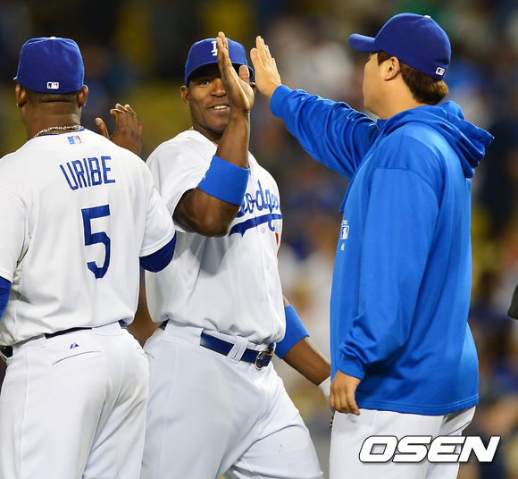 다만 승리투수로 가는 길에는 큰 이상이 없었다. 8.2이닝 동안 5피안타 3사사구 9탈삼진 2실점으로 시즌 13승(3패)째를 따내 리그 승률 부문 1위를 굳게 지켰다. 타선에서는 푸이그가 1점 홈런을 포함, 3안타 경기를 펼쳤고 라미레스는 홈런포를 가동했다. 이날 승리투수가 된 그레인키는 결승타까지 책임졌다.