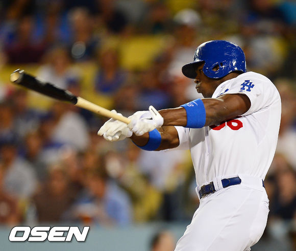 8회말 2사 주자 없는 상황에서 다저스 푸이그가 좌월 솔로홈런을 날리고 있다. / rumi@osen.co.kr