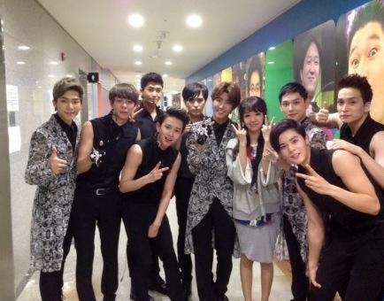 제국의아이들은 26일 공식 트위터에 "MBC 복도에서 만난 이정현 선배님과 함께 제국의아이들 단체 샷!"이라며 이정현과 포즈를 취하고 있는 사진을 공개했다.