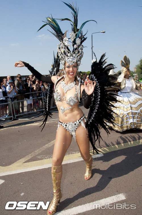 [OSEN/WENN 특약] 26일(현지 시간) 영국 웨스트 런던에서 열린 노팅힐 카니발(Notting Hill Carnival)에서 삼바 무용수가 멋진 공연을 펼치고 있다.